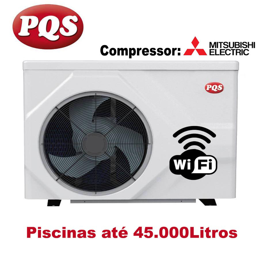 A Bomba de Calor FULL INVERTER Marca PQS Vem Equipada Com WIFI e Compressor da Marca Internacional MITSUBISHI e display de facil funcionamento.