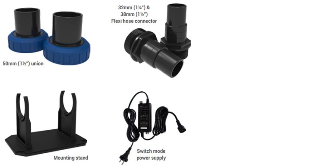 Conexões de 50 mm / 38mm, adaptáveis a diferentes tipos de sistema de tubos.
