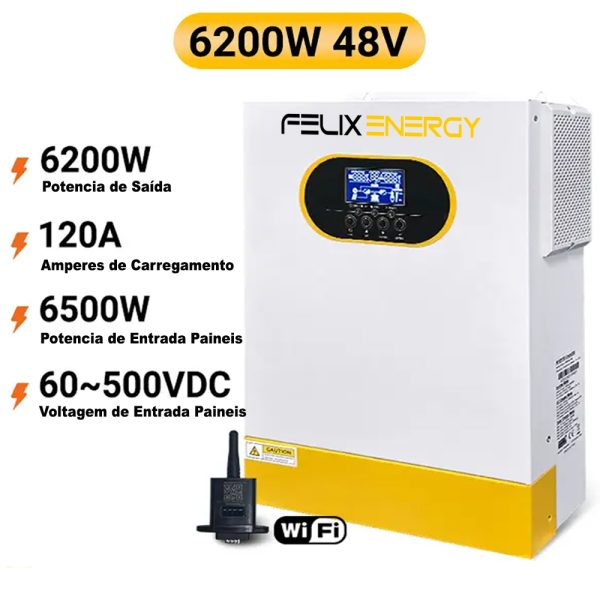 O Inversor tudo em um Axpert vem com um carregador de 60A ac para carregar em caso de necessidade.
